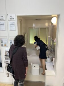 ショールームでは、実際の浴槽に近づいて形や深さをチェック!